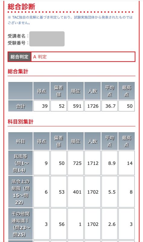 迎えた本試験の結果は39点。